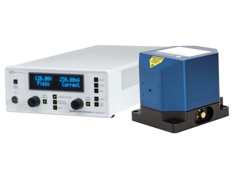 The New Focus™ tunable external cavity diode lasers deliver true continuous mode-hop-free tuning. It is our highest performance precision finely tunable external cavity diode laser. The Littman-Metcalf cavity configuration provides exceptional stability, piezo mode-hop-free tuning range and narrow linewidth. Thermal and finite element analyses led us to the Star-Flex design that provides stiff, reproducible rotational motion without any translation. The Vortex Plus includes an SMA port for direct to diode high speed current modulation. When ordering, please specify the exact center wavelength (to 10 pm) in vacuum. Part number includes complete laser system and the new TLB-6800-LN laser controller. Heads and controllers can also be sold separately.